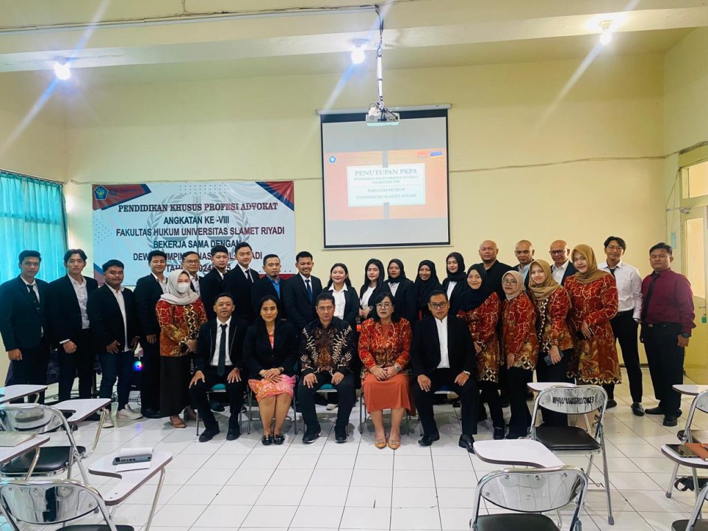 Surakarta, 18 Juli 2025 — Setelah melalui serangkaian sesi perkuliahan dan pelatihan intensif selama beberapa minggu, Program Pendidikan Khusus Profesi Advokat (PKPA) Angkatan ke-VIII yang diselenggarakan oleh Fakultas Hukum Universitas Slamet Riyadi (UNISRI) resmi ditutup dalam sebuah acara yang berlangsung khidmat dan penuh semangat.